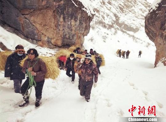 记者2月17日从青海省玉树州抗灾救灾工作应急指挥部办公室获悉,截至目前发生在该州境内的局部雪灾共造成超过1.8万头(只、匹)牲畜死亡,无人员伤亡和重大动物疫情发生。图为玉树州相关部门发放救灾饲草料。 钟欣 摄