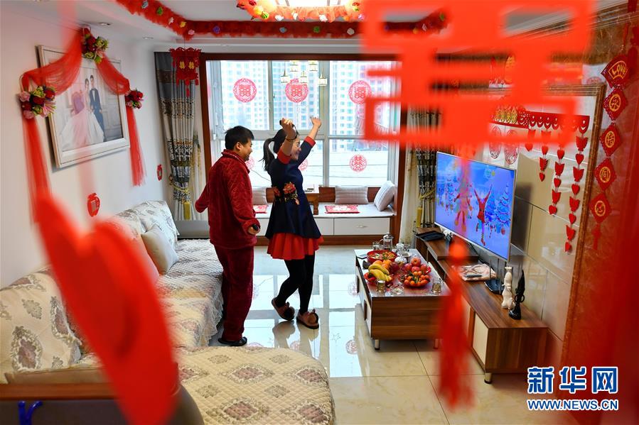 2月13日,马锦钊和张文烨(右)在家里玩游戏。新华社记者 曹阳 摄