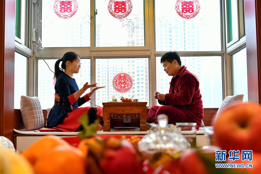 2月13日,马锦钊和张文烨(左)在家里打扑克。新华社记者 曹阳 摄