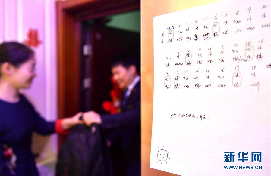 这是马锦钊、张文烨夫妻在家里冰箱上贴的值班安排表(2月13日摄)。 新华社记者 曹阳 摄