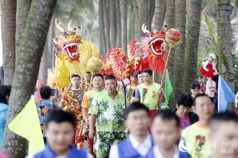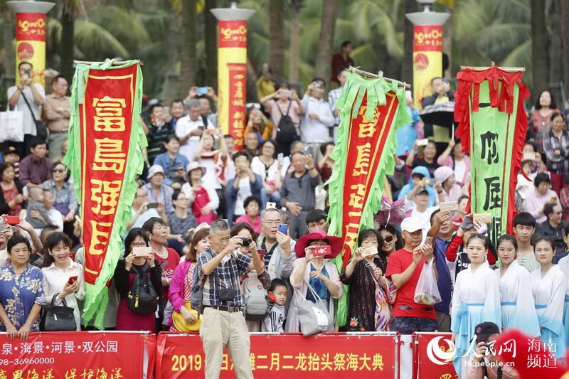人民网海口3月8日电(记者 吉羽)3月8日农历二月初二,民间素有“二月二龙抬头”的说法。当天,以“热爱海洋、感恩海洋、保护环境”为主题的“2019中国·海口第十一届二月二龙抬头海洋民俗文化旅游节”在海口假日海滩举行。