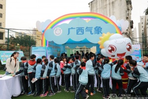 广西新闻网南宁3月27日讯(记者 蓝于涵)3月26日,2019年“3·23”世界气象日科普进校园活动在南宁市民族大道中段小学内开展,活动现场公布“太阳、地球和天气”主题手抄报展评获奖名单并开展气象科普报告会。同时,广西气象科普主题屋也来到校园内,让孩子们通过丰富的互动游戏了解气象防灾知识。