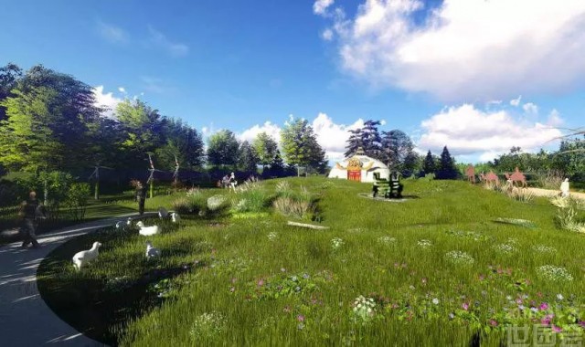 内蒙古素有“草原天堂”的美誉,8700公顷草原,使内蒙古拥有我国最大的草场和天然牧场,并且也让内蒙古成为了世界上天然草原保留面积最大的区域。卷一“美丽的草原我的家”是园中的主体表达区域,这里以缀花草坪为基底,结合起伏的草坡地形,展现内蒙古辽阔大草原风貌的同时,也表达草原人民自由勇敢、开放包容的精神。