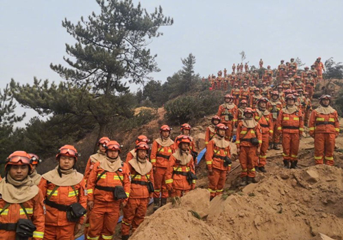 多支森林消防队伍举行默哀仪式,悼念四川凉山木里火灾中牺牲的30名扑火英雄。