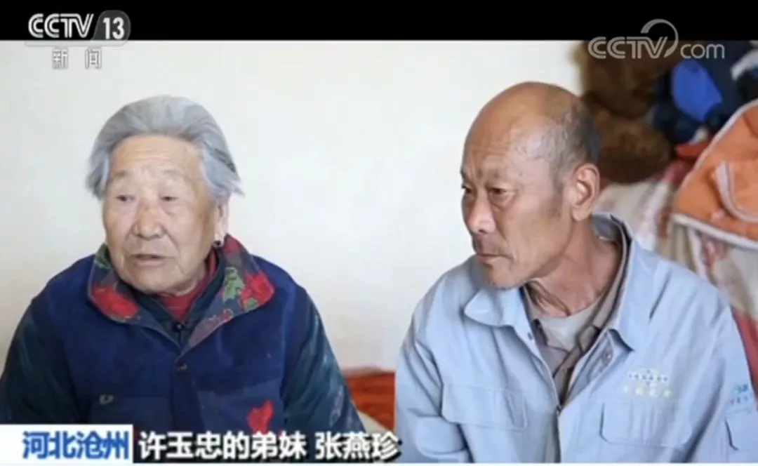 因此,“许玉忠”和此前我们找到的“齐秀亭”,都在志愿军60军服役,一个在179师,一个在181师。查阅资料发现,这两个师都曾在38线南侧,也就是现今的韩国境内作战。而“齐秀亭”和“许玉忠”的印章也恰恰出现在那里。这也许并不是巧合。 白文岐带记者来到了“许玉忠”家人的住址,出来迎接的是许同海,许同海的三伯就叫“许玉忠”。听到有人带来了三伯的消息,许同海迎接的第一句话,就是谢谢。 许同海说父亲那辈是六兄弟,如今都已不在人世。还健在的长辈中,86岁的老母亲张燕珍就见过当年许玉忠光荣参军时的情景。 许玉忠的弟妹 张燕珍:“村干部,还有当年领兵的人来一起领走的,戴着大红花然后骑上马就走了。”