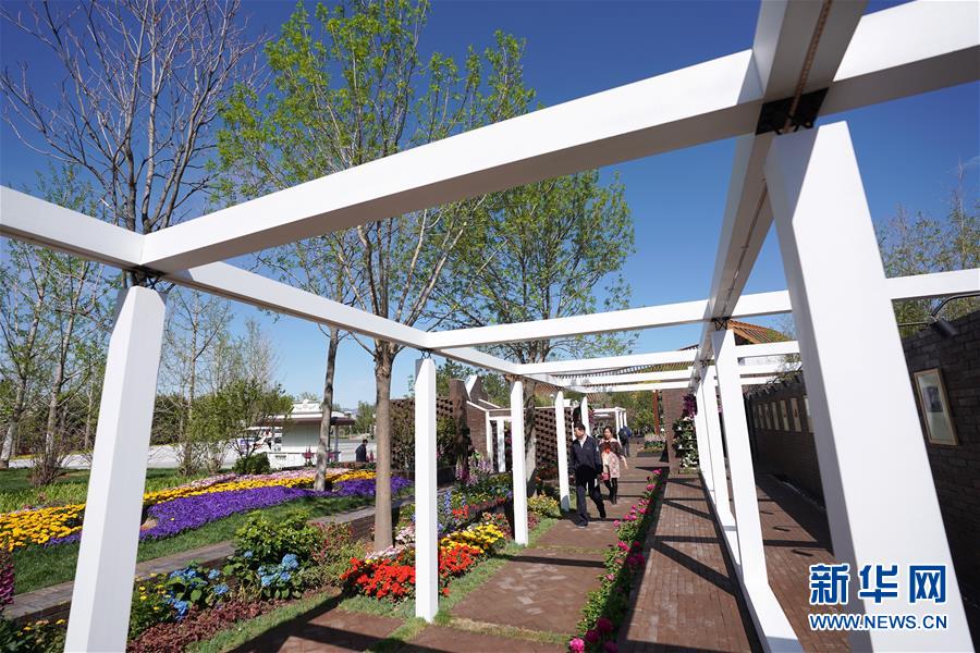 5月5日,游客在北京世园会天津园内参观。 当日,以“生态天津 绿色发展”为主题的北京世园会“天津日”活动开幕。5月5日至7日将举办天津市文化旅游推介会、园林园艺及都市休闲农业项目推介会、世园主题少儿绘画展览、文艺演出、非遗展演等多场特色活动。 新华社记者 鞠焕宗 摄