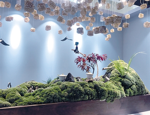 园林是文化创意不可或缺的一部分。在上海大剧院的展位上,一座用多种绿植打造的微缩江南园林格外引人注目,林中还有精致的茶壶、茶杯和盖碗,环绕园林铺展着宣纸,上书大剧院出品的原创昆曲《浮生六记》的唱词。该项目负责人顾琰介绍,《浮生六记》将于7月上演,他们以该剧为灵感,设计推出了“浮生”系列文创产品莳绘金彩手工盖碗和竹丝扣瓷茶具,在本次博览会上首发。作为国家对外文化贸易基地(上海)授权主题展区的参展机构,上海大剧院有意开发《浮生六记》IP,推出帆布包、马克杯、香盒等剧目周边产品,将昆曲、园林等传统江南文化元素整合推送,融入文创爱好者的日常生活。
