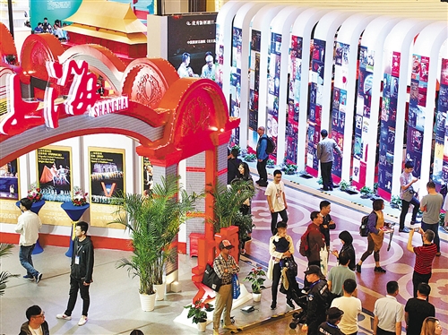 上图 5月19日,观众在第十二届中国艺术节演艺及文创产品博览会上参观。新华社记者 任 珑摄