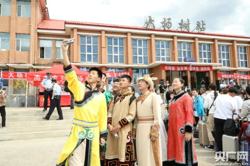 少数民族考生乘车前合影留念(央广网记者 冯志远 摄) 央广网哈尔滨6月6日消息(记者乔仁慧 冯志远 宝音)又是一年高考时。6月5日,11时30分,在祝愿高考学生金榜题名的一片祝福声中,满载着鄂伦春族、达斡尔族等少数民族考生的K5117次“高考专列”安全驶出内蒙古鄂伦春自治旗大杨树站,向高考所在地呼伦贝尔市鄂伦春自治旗阿里河镇驶去,由此拉开了高考专列开行17年的序幕。 今年大杨树镇共有511名应届考生及教师、家长乘坐高考专列赶赴阿里河镇参加高考。哈尔滨局集团公司于6月5日和6月8日,开行去程K5117次和返程K5122次高考专列。这也是哈尔滨局集团公司连续第17年为少数民族考生开行高考专列。