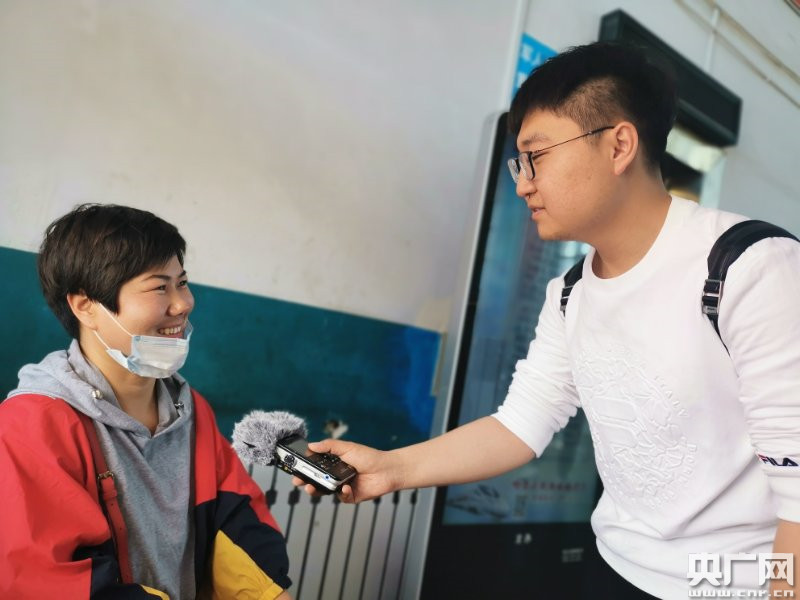 央广网记者冯志远正在采访陪同家长(央广网记者 乔仁慧 摄) 高考专列寄托了铁路职工对莘莘学子们温暖出行的情怀。对于大杨树站客运值班员闫建荣来讲,今年6月5日高考专列开行的日子,也是她告别铁路岗位退休的日子。从2003年服务于首趟高考专列,至今17年。今年,最后一次服务于高考专列,闫建荣有着别样的心情,为自己告别高考专列伤怀,那里饱含太多的不舍。引导、安检、检票、进站上车……,每年她都忙碌于高考专列的现场组织与服务,看着安全登程列车为理想而去努力奋斗的孩子们,每每此时她的心中都充满自豪和骄傲,为自己是一名铁路职工自豪,为自己能为考生出一份力、尽一份责骄傲。 大杨树站售票员孙晶,2011年乘坐高考专列,毕业后坚持回到家乡工作。每年6月5日,她都会作为引导员,在车站广场举着牌子,引导考生踏上列车。每当看到那些考生们,孙晶就好象看到了从前的自己。