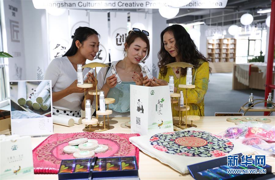 6月16日,在会东县金江文化创意产业园里,游客在挑选高原艾草产品。 近日,四川省凉山彝族自治州会东县金江文化创意产业园开园。这座集孵化、服务、推广、研发于一体的文化创意产业园由县城的老建筑“老电影院”改造而成,建筑面积1万余平方米,包含创意设计服务、文创企业孵化、新媒体推广和文创产品研发等四大平台,致力于本土传统手工艺品、非遗文化、旅游资源的挖掘和融合等。 新华社记者 江宏景 摄
