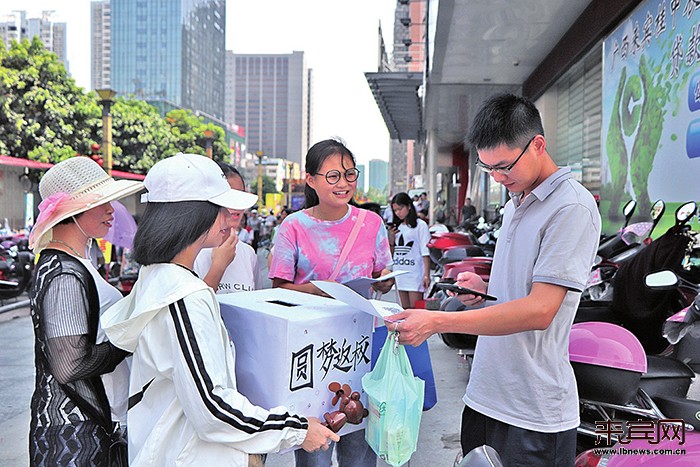 同学们在街头向行人募捐。 “班长,我们等你回来!”“孩子们的爱心令我感动,我也献了一份爱心。”6月30日,市第一中学1815民族班的60多名学生自发来到桂中大道方盛广场、前卫路迎宾广场,为他们的班长韦志文募捐,感动了不少市民。 当天,学生们顶着烈日、拿着倡议书、抱着捐款箱,向路过的市民介绍韦志文的病情。该班学生罗蓉姿说:“我们班长因确诊淋巴瘤白血病被迫停学,已经在北京治疗3个月。现在他急需做费用高昂的骨髓移植手术,所以我们利用周末时间向各界好心人士发起募捐。” “能教这些富有爱心的学生是我的荣幸,能带这样充满爱心的班级是我的骄傲。”该班班主任陈在兵告诉记者,在此次街头募捐活动前,学生们已在该校组织过一场爱心募捐,并将筹集到的9000余元善款转交给韦志文的父亲韦仁锋。 “非常感谢班主任、同学们以及所有爱心人士,相信有大家的支持,韦志文一定可以康复。”韦仁锋告诉记者,目前妻子和弟弟在北京全程陪护儿子,他则带着女儿在来宾四处筹钱。“家里的积蓄已用完,但还有近百万元的医疗费用缺口。”韦仁锋说,无论多么艰难,他们都不会放弃,只要还有一丝希望,他们都会坚持到底。 |