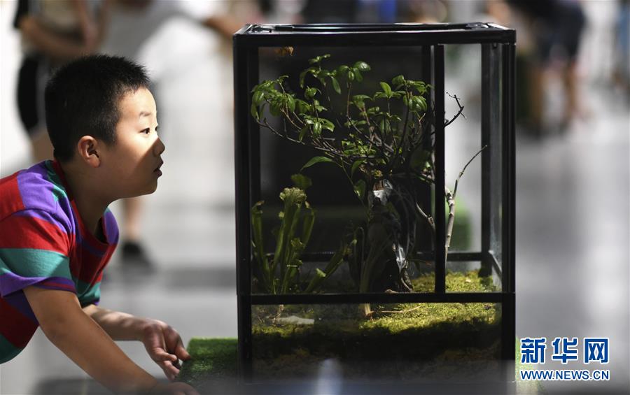 7月14日,一名小朋友在昆虫科普教育展上观察活体昆虫。 近日,一场别开生面的昆虫科普教育展在西安当代美术馆举行,七百余件昆虫标本和一百余种活体昆虫吸引了大批小朋友前来参观,丰富了广大青少年的暑假生活。 新华社记者 李一博 摄
