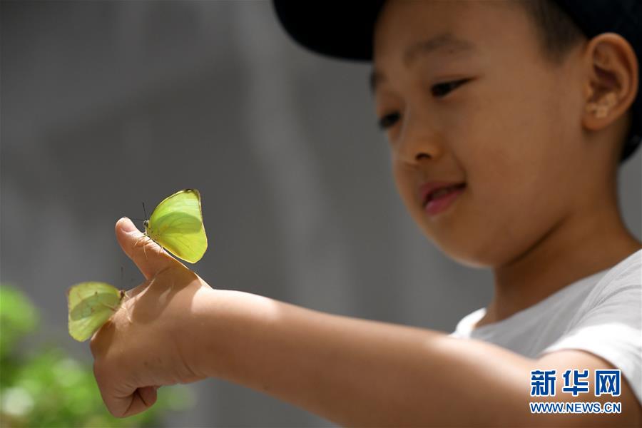 7月14日,一名小朋友在昆虫科普教育展上观察蝴蝶。 近日,一场别开生面的昆虫科普教育展在西安当代美术馆举行,七百余件昆虫标本和一百余种活体昆虫吸引了大批小朋友前来参观,丰富了广大青少年的暑假生活。 新华社记者 李一博 摄