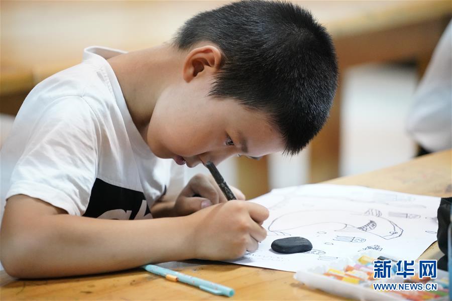 7月30日,学生在河北省涉县青少年活动中心画画。 暑假期间,河北省涉县青少年活动中心组织孩子们开展科技、艺术、体育等系列活动,通过开设儿童画、航模、舞蹈等多种兴趣班,让孩子们在多彩的暑假中增长知识,开阔眼界。 新华社记者 邢广利 摄
