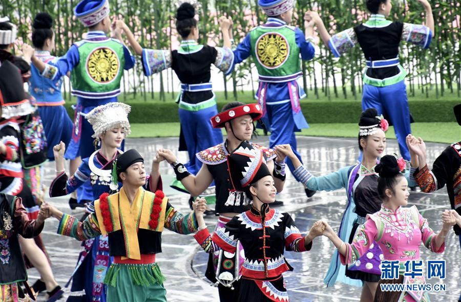 8月4日,来自贵州省黔东南苗族侗族自治州的演员在表演民族歌舞。新华社记者 李欣 摄