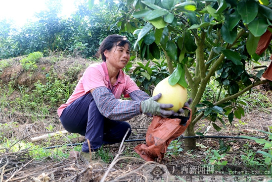 村民正在采摘蜜柚。广西新闻网通讯员 覃捷 郭开浪供图