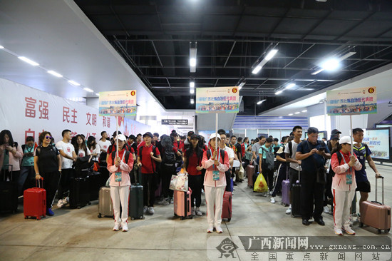 9月5日,广西代表团工作人员、领队、教练员、运动员和随团记者陆续抵达河南省郑州市,参加2019年9月8日—16日在郑州举办的第十一届全国少数民族传统体育运动会。