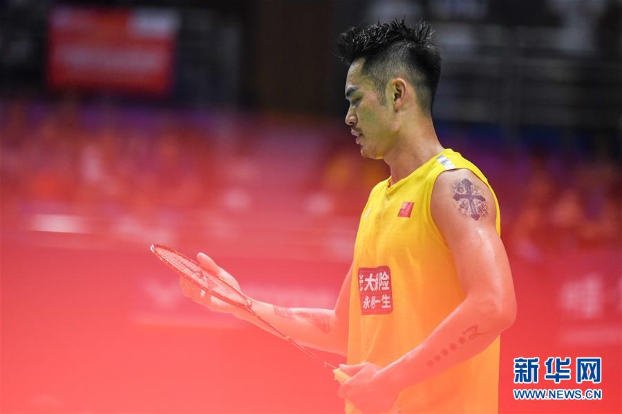 9月17日,林丹在比赛中。 当日,在江苏常州举行的2019中国羽毛球公开赛男单首轮比赛中,中国选手林丹以0比2不敌日本选手桃田贤斗。 新华社记者李博摄