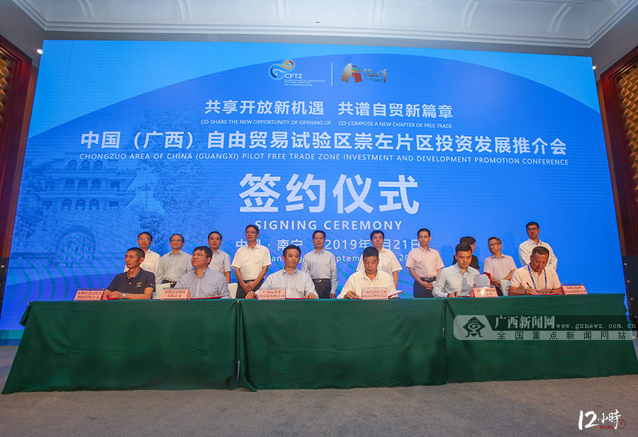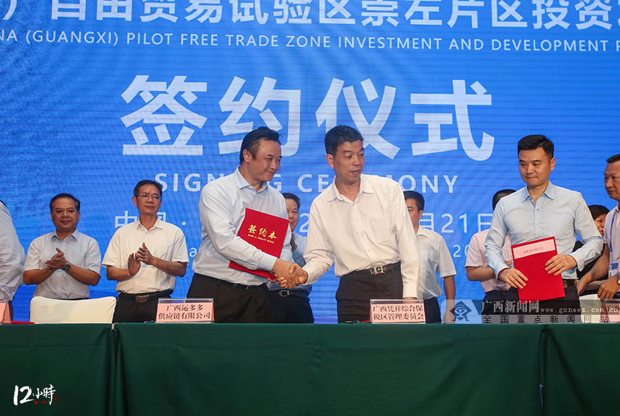12:00 参会人员黄海华在推介会现场接待合作企业代表。 搭乘第16届东博会、峰会的东风,9月21日,中国(广西)自由贸易试验区崇左片区暨凭祥投资发展推介会在南宁举行。会上就中国(广西)自由贸易试验区的区位、政策、资源等优势和重点产业进行推介,成功吸引三诺集团、五洲国际控股有限公司、印尼FKS集团、广州江楠农业发展有限公司等多家企业签订36个项目投资协议,项目投资达160多亿元。 广西凭祥综合保税区管委会投资促进处处长黄海华今年已经是第16次参加东博会了。此次参加东博会,他主要负责组织企业代表来参加推介会。此外,他还组织一些企业在会上进行签约。 13:40 黄海华代表广西凭祥综合保税区管委会上台签约。 “东博会我每年都参加,感受很深刻!”黄海华告诉记者,以前他们需要到处去拜访客户招商,把企业请来,现在随着中国与东盟的合作关系越来越密切,好多客商主动找上门,“以前是我们想尽办法找客商,现在是客商主动找我们。”黄海华认为,东博会将对中国(广西)自由贸易试验区的建设起到很大的帮助和促进作用。 14:00 黄海华应邀接受媒体记者采访。