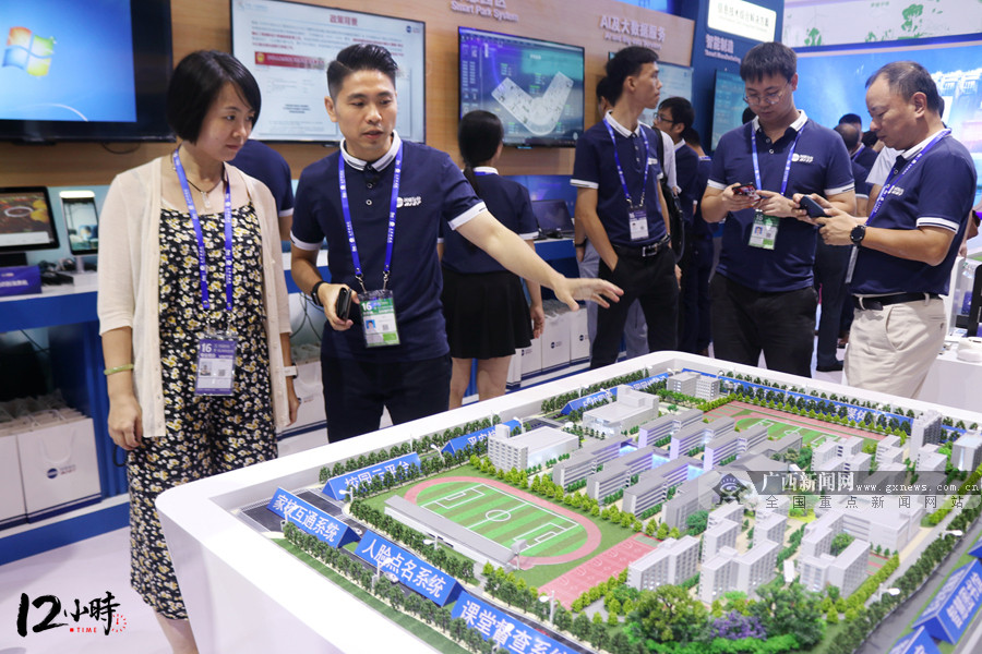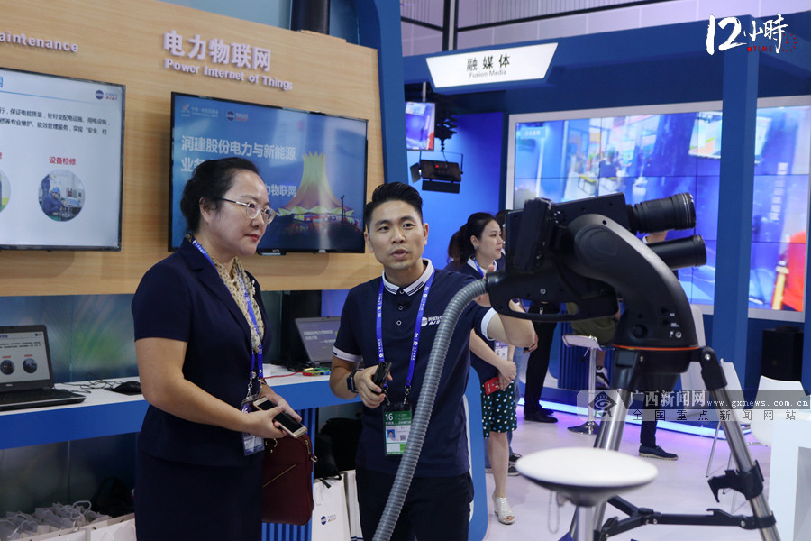 14:05 参展商周锦福在展位推介产品、接待客人。 随着与会人员陆续通过安检进场,南宁国际会展中心的各大展馆里开始人头攒动。14时05分,茶商周锦福的展位前人流如织,他开始忙碌着接待客人、推介产品。 来自柳州的周锦福,现在在老挝经营着一家茶企。2009年,他便开始作为参展商参展,早已是东博会的老朋友了。“我本次带来的产品全是来自老挝的高品质原生态古树茶。”周锦福送走客人,开始整理着商品,“老挝人不怎么喝茶,但是老挝有着丰富的古茶树资源。”周锦福一下子看到了商机,于是他离开家远赴他国打拼,时间一晃就是十几年。 作为多年的参展商,周锦福觉得如今会务服务做得越来越好,参会很方便,无论是办证还是物流,简单快捷。他说,通过东博会平台,东盟国家的民众可以更好地了解中国,他也希望自己继续做好倡导健康茶饮的生活方式,推动中华茶文化在老挝乃至东南亚的传播与交流。 15:10 “润建‘智慧校园’为教育行业客户提供一站式信息技术服务,以物联网、云计算、大数据等新技术为核心技术,提供环境全面感知、智慧型、数据化、网络化、协作型一体化的教学、科研、管理和生活服务。”在南宁国际会展中心E区展厅商品贸易专题展区里,参展商覃诗正耐心地为顾客介绍着公司的“智慧校园”项目。 “往年都是作为观众看展,今年第一次以参展商身份参会,有点兴奋和激动。”覃诗说。 覃诗,润建股份有限公司的一名干部。作为一家广西本土主板上市公司,润建股份有限公司近年来发展迅速,以客户价值创造为导向,该公司不断加强信息技术与电力新能源板块技术研发投入,整合上下游资源,已逐步发展为信息与电力技术服务综合解决方案提供商。 说到能和同事们代表公司来参展,覃诗感到很荣幸。“备展难免忙碌,但是想到可以在东博会上和更多企业交流、学习与合作,一切都值得。”在现场,观众可以看到该公司在电力、新能源、通信服务、云服务、大数据、5G技术应用、物联网等多领域服务产品的展示,前来他们展区里了解、咨询的客户络绎不绝,他和同事们个个认真地接待着客人,介绍着产品和项目。