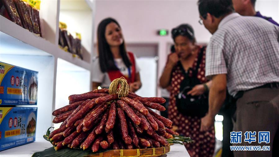 9月22日,在第16届中国-东盟博览会农业展上,参观者在选购食材。 当日,第16届中国—东盟博览会农业展在广西南宁举行,展销的渔牧产品、优质水果、茶叶等特色农产品和东盟特色食品吸引了众多参观者前来“赶集采购”。 新华社记者 张爱林 摄