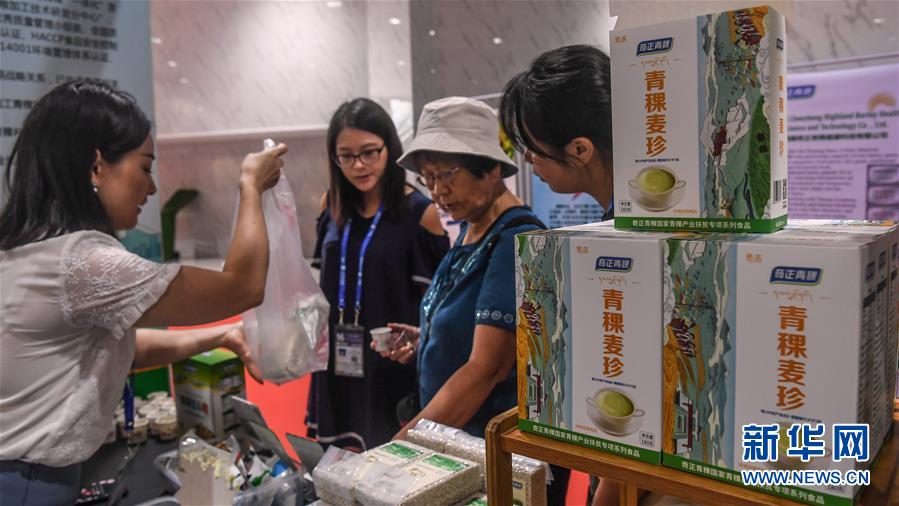 9月22日,在第16届中国-东盟博览会农业展上,参观者在选购农产品。 当日,第16届中国—东盟博览会农业展在广西南宁举行,展销的渔牧产品、优质水果、茶叶等特色农产品和东盟特色食品吸引了众多参观者前来“赶集采购”。 新华社记者 张爱林 摄