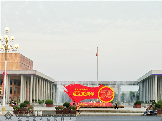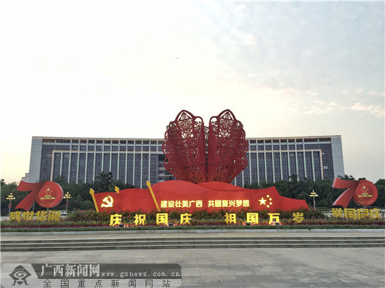 市政广场前装饰了国庆主题造型。广西新闻网记者 谢冬梅 摄