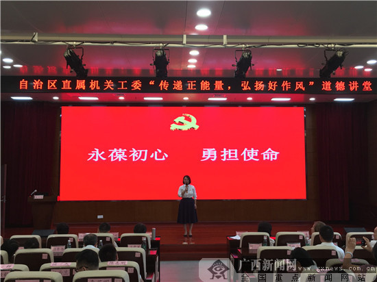 广西新闻网南宁9月30日讯(记者 陶昌顺)9月29日,以“传递正能量,弘扬好作风”为主题的自治区直属机关工委道德讲堂在自治区直属机关工委党校举行,工委全体干部职工参加道德讲堂。
