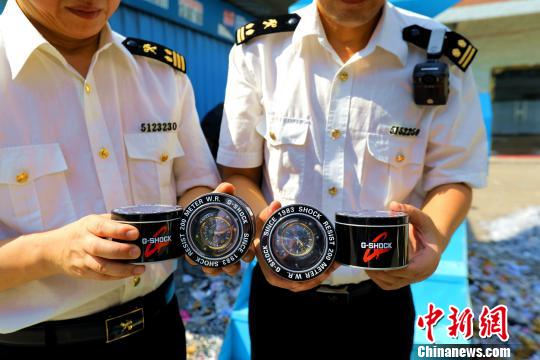 广州海关所属南沙海关查获的侵权手表 殷寿柏 摄