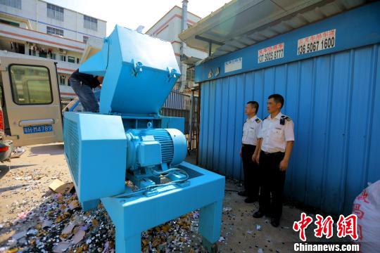 广州海关所属南沙海关关员现场监管侵权货物销毁 殷寿柏 摄