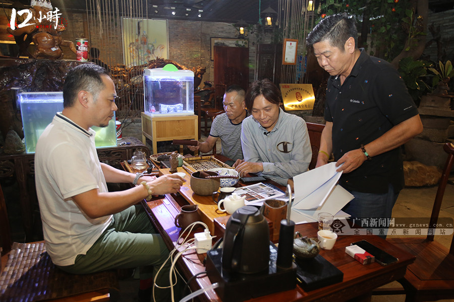 谭嘉伦下班后到邕州老街与在本地结识的本地朋友们聚会。