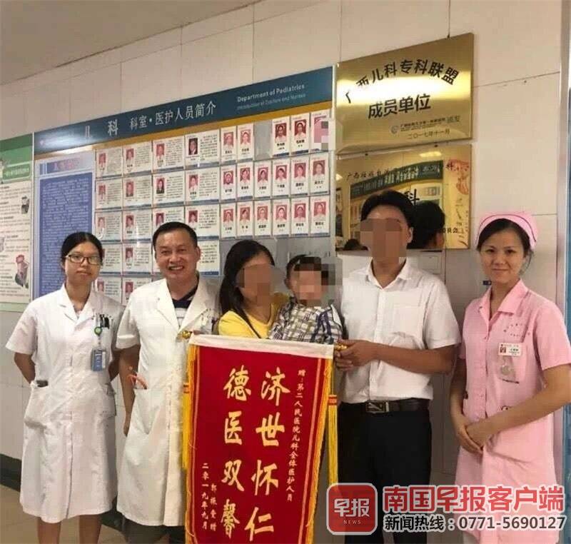 平南县一名两岁男孩遭遇车祸,受伤严重,经过平南、南宁两地医院1个多月的全力救治,最终脱离危险,康复出院。近日,男孩家属为医院送去锦旗,感谢医务人员的救命之恩。