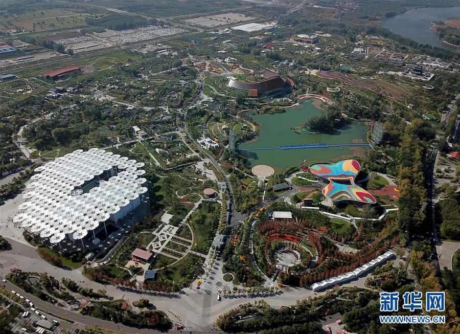 北京世园会园区(10月7日无人机拍摄)。新华社记者 王毓国 摄
