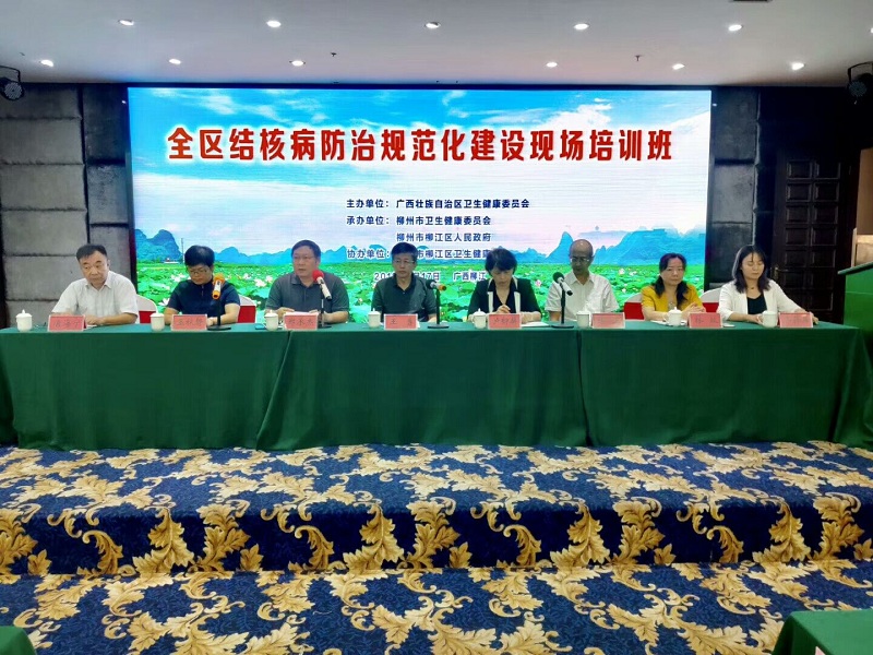 为总结和推广柳州市柳江区结核病防治规范化建设经验,进一步推进我区在结核病“防”、“治”、“管”三位一体综合防治服务模式下,医防融合,规范实施国家相关结核病防治标准和防治措施,2019年9月16-18日,由自治区卫生健康委主办,自治区疾控中心承办的“全区结核病防治规范化建设现场培训班”在柳州市柳江区举办,来自全区各市、县(市/区)卫生健康委(局)、疾病预防控制中心、结核病定点医院相关领导共400余人参加培训班。自治区卫健委党组副书记(正厅级)、副主任王勇, 柳州市副市长卢柳屏,自治区卫健委疾控处处长郑承杰,柳州市卫健委党组书记、主任林卫,柳州市柳江区委副书记、区长玉秋静,自治区疾控中心主任林玫,广西龙潭医院院长唐海宁,柳州市柳江区委常委、宣传部长、副区长韦菲菲等领导出席开幕式。开幕式由自治区卫健委疾控处处长郑承杰主持。