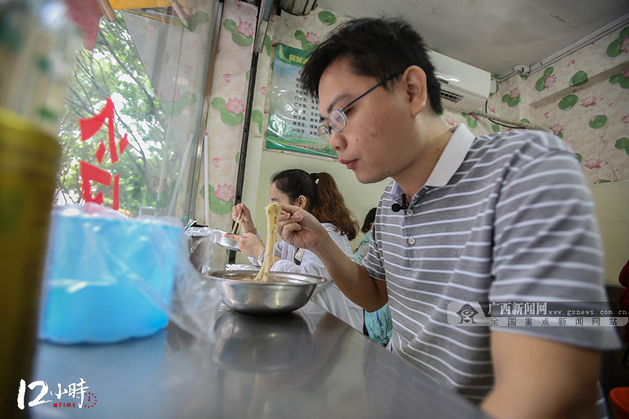 08:00 上午8时,将女儿安全送达学校后,陈裕川来到单位附近的粉店吃早餐。为了尽早赶到办公室,一碗二两的粉,陈裕川“唰唰”不到2分钟就吃完了。