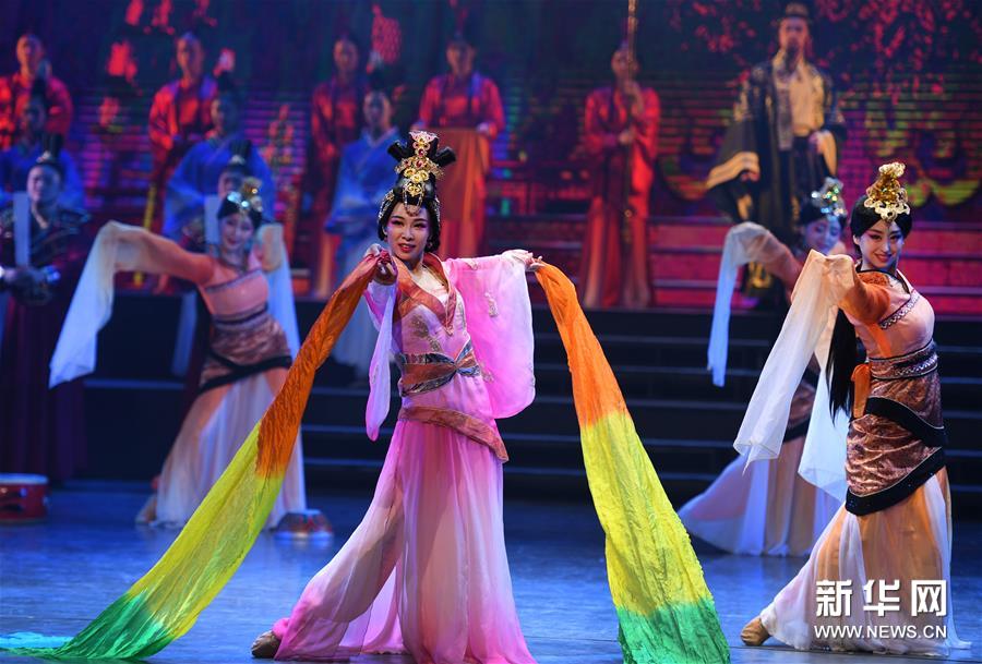 10月19日,演员在表演汉韵情景剧《汉风飞扬》第二幕“天地祥和”。新华社记者陶明摄