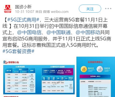 5G!真的来了! 今天早上(10月31日)举行的2019中国国际信息通信展览会上,工信部与中国电信、中国联通、中国移动、中国铁塔一同宣布启动5G商用,明天(11月1日)三大运营商将正式上线5G商用套餐。