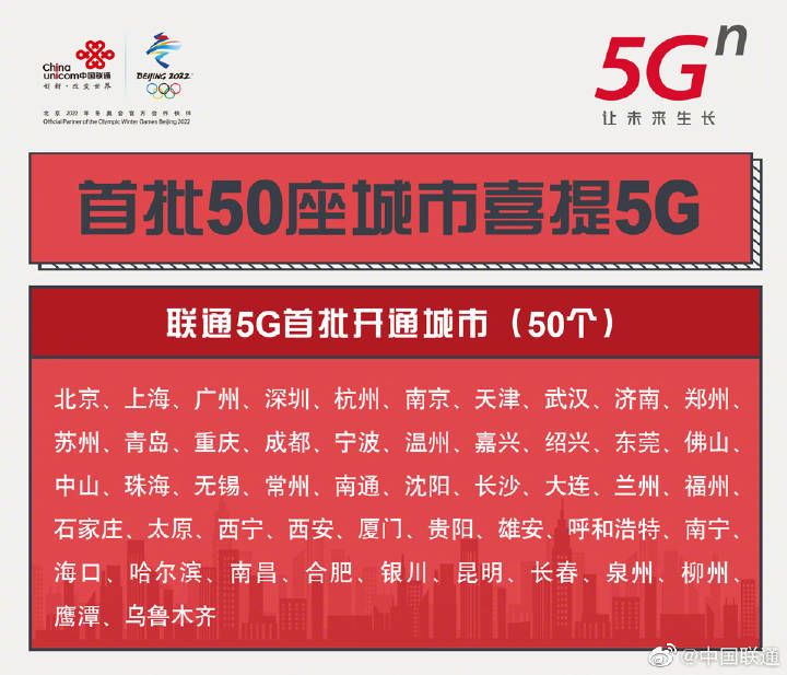 中国电信首批50个5G商用城市: 北京、上海、深圳、广州、成都、南京、苏州、重庆、武汉、杭州、 长沙、郑州、天津、无锡、芜湖、福州、泉州、贵阳、雄安新区、南昌、鹰潭、呼和浩特、乌鲁木齐、大连、沈阳、石家庄、太原、南宁、青岛、昆明、温州、柳州、长春、哈尔滨、海口、琼海、厦门、合肥、西安、佛山、宁波、西宁、银川、兰州、东莞、济南、嘉兴、绵阳、珠海、金华。 当然没有开通的城市也不要着急 5G基站正在如火如荼的建设中 中国铁塔表示,预计在今年底在全国建成10万个5G站址。5G建设将充分利用现有站址资源,遵循“能共享就不新建”的原则,最大化利用现有资源,提高建设效率。 同时,面向5G室分共享,中国铁塔提供了完善的低成本无源室分共享方案,支持三家电信企业2G/3G/4G/5G全频段共享接入,适应楼宇与隧道、新建与改造全场景需求,可最大化节省三家电信企业5G室分建设成本。 2019是5G元年 中央企业积极开拓布局 未来会有越来越多的城市覆盖5G 未来也会有更多的5G应用开发出来 4G改变生活,5G改变社会 #5G进行时# 我们一起共享未来 ———— / END / ————