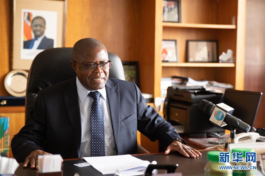10月30日,赞比亚商贸工部长克里斯托弗·亚卢马在卢萨卡接受专访。新华社记者彭立军摄