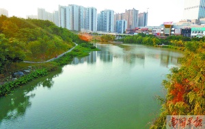11月4日,记者获悉,从今年3月开始的南宁市内河排口控源截污项目一期工程正如火如荼地进行,预计年底完成建设。改造后,污水可快速排入污水管网,通过处理,实现再生回用,避免对河道、地下水造成污染,明显改善城市水环境。图为11月4日,贤宾湖波光潋滟,景色优美。记者 何定坚摄(广西新闻网-南国早报)