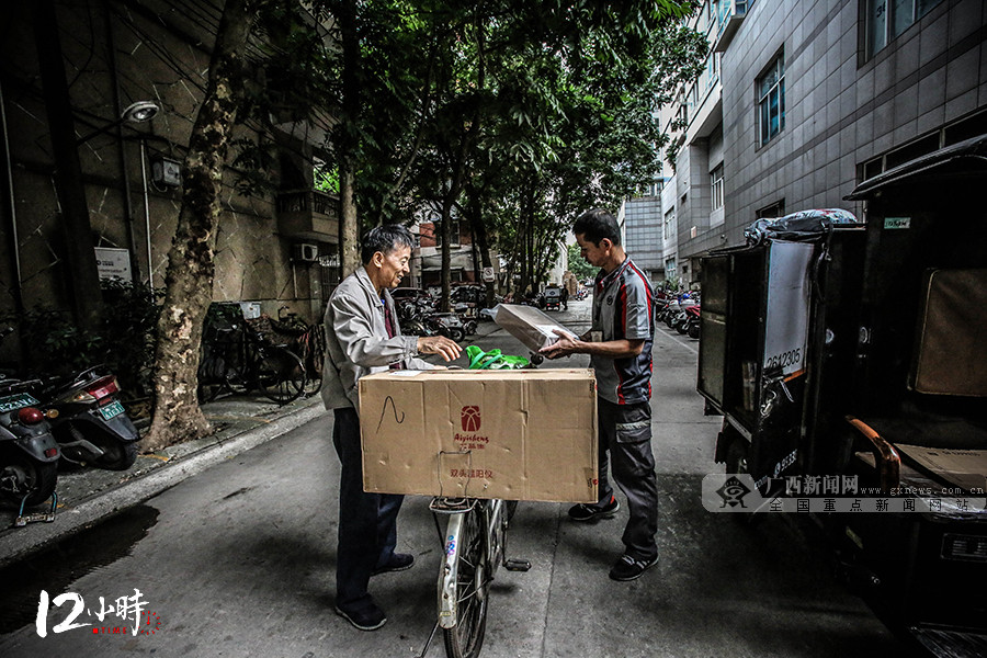 黄明夫在广西日报社进行下午的第二趟收派件工作。记者注意到,黄明夫下午的工作基本还是不断地打电话给顾客,不断地派件。