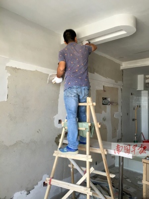 卫生间干湿分区之后,干区墙面不用做防水?给新居刷墙时,要不要往腻子粉里添加胶水?抽油烟机的排烟管拐两个弯,是否影响排烟效果?记者近日走访工地,收集到几种装修双方因观念碰撞而产生的争议。到底听谁的?来听听相关人士的专业解析。图为刮腻子添加胶水是不规范的,但已成为南宁装修行业的无奈之举。记者 王光家摄(广西新闻网-南国早报)