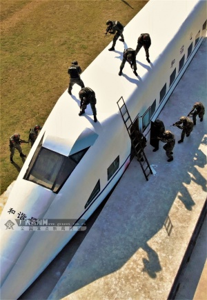 特战队员向车厢发起攻击。广西新闻网通讯员 秦可 余海洋供图