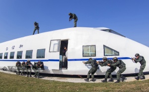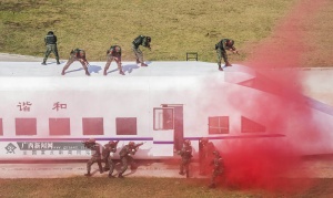 广西新闻网桂林11月22日讯(通讯员 秦可 余海洋)11月22日,武警广西总队桂林支队20多名特战官兵全副武装,开展动车反劫持实战演练。据悉,该支队通过设置复杂情况下的实战化演练,不断锤炼特战队员遂行多样化任务能力。
