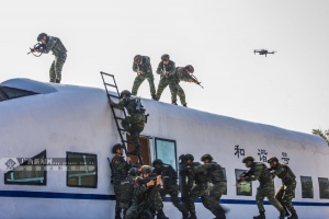 广西新闻网桂林11月22日讯(通讯员 秦可 余海洋)11月22日,武警广西总队桂林支队20多名特战官兵全副武装,开展动车反劫持实战演练。据悉,该支队通过设置复杂情况下的实战化演练,不断锤炼特战队员遂行多样化任务能力。