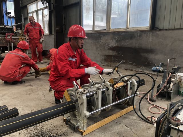 PE管焊接 有的员工将生病的托付父母给家人照顾 自己留在项目部赶工 有的员工为保证工程进度,推迟了婚期 有的员工喊到嗓子失声,依然用手语坚持工作