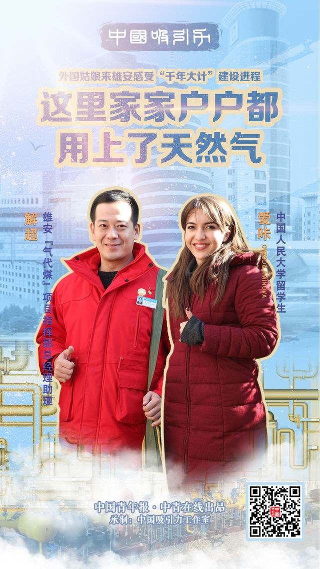 半个多世纪后 中国石油人再次面临着艰巨的任务—— 河北省雄安新区“气代煤”工程 来自河北、北京、天津、山东的千余名员工 带着设备火速驰援、投入施工 展开新时期的大会战 完成气化雄安的重大使命 将铁人精神在新时代、新征程中续写下去 来自乌兹别克斯坦的留学生爱咔(Oyzoda Aminova) 已经在中国生活了十几年 近几年,她发现冬天常见蓝天、空气变得越来越清新 听说雄安的“气代煤”工程也为蓝天保卫战助力不少 还为老百姓的生活带来了实在的益处 她便跟着《中国吸引力》栏目组的脚步前去探访