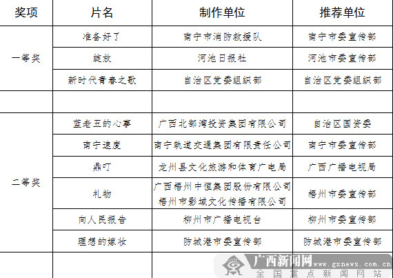 附:2019年“德行天下·微影故事”——广西践行社会主义核心价值观主题微电影征集展示活动获奖作品名单