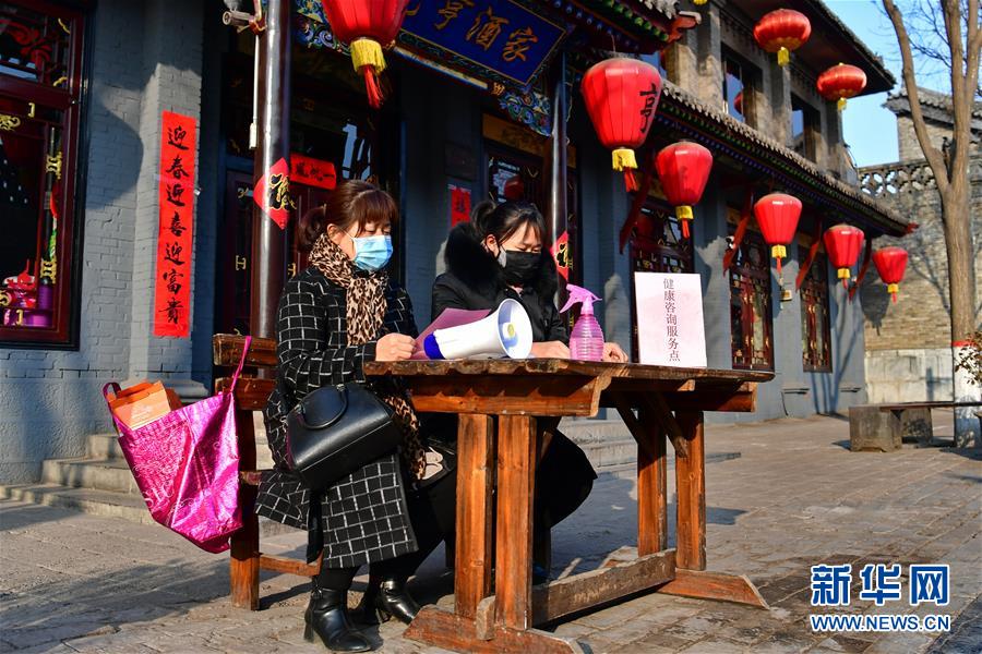 山西省晋中市平遥古城的工作人员在健康咨询服务点值班(2月8日摄)。 近日,为做好新冠肺炎疫情防控工作,山西省晋中市平遥古城加强重点区域的防疫管理,落实卫生消毒无死角、出入人员严排查、设立健康咨询服务点、动态体温检测等多项措施。 新华社记者 曹阳 摄
